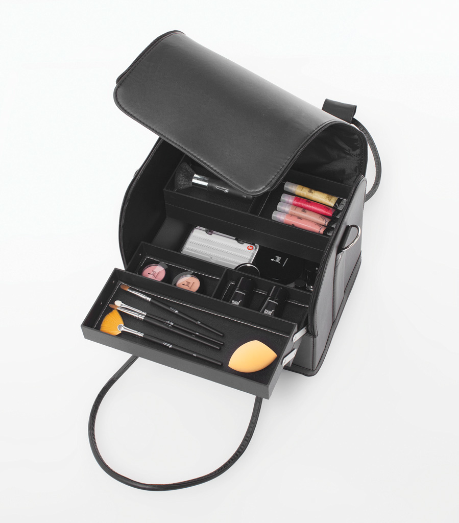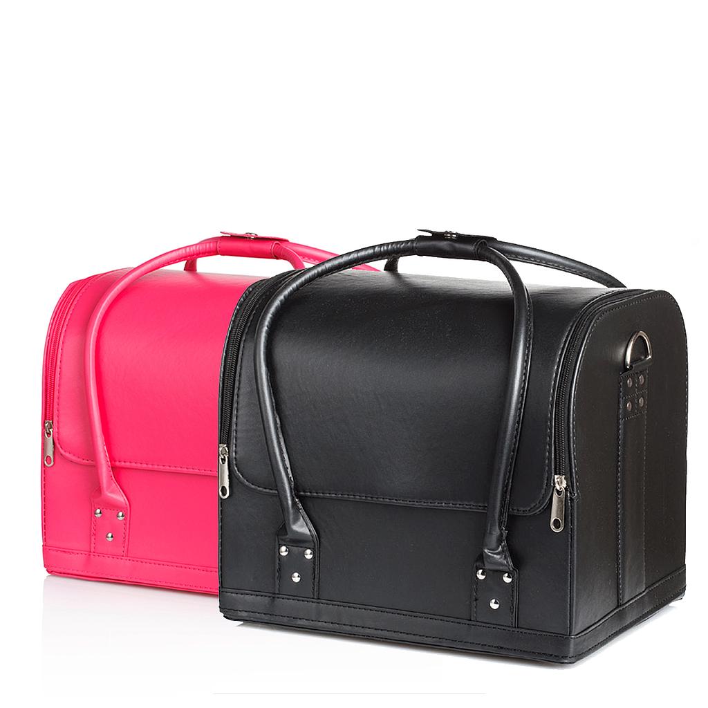 Maleta y a la vez bolso bandolera profesional para guardar productos de estética o peluquería. Consta de seis compartimentos de almacenamiento más uno central grande a 3 alturas que puede ser separado del fondo, dejando la maleta vacía. Gran capacidad y muy cómoda. Diseño refinado y de buena calidad.